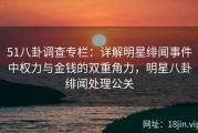 娱乐圈的风云变幻,往往在一夜之间引起轩然大波。明星们光鲜亮丽的背后,隐藏着多少不为人知的黑料与丑闻?作为普通大众,我们在追逐明星光环的难免会对他们背后的秘密产生浓厚兴趣。近日,51吃瓜爆料网和吃瓜51...