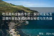 在如今的娱乐圈,明星的私生活似乎成了最吸引眼球的话题,无论是光鲜亮丽的公众形象,还是那些不为人知的黑料,都是媒体和网友们津津乐道的谈资。尤其是在51吃瓜平台的推动下,越来越多的明星黑料被曝出,令人目不...